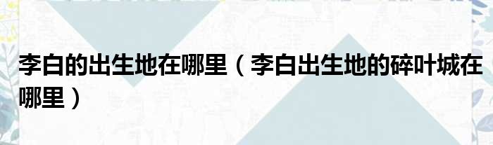 导读 大家好,今天小六子来为大家解答以下的问题,关于李白的出生地在哪里,李白出生地的碎叶城在哪里这个很多人还不知道,现在让我们一起来看看