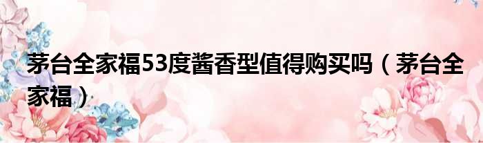 导读 大家好,今天小六子来为大家解答以下的问题,关于茅台全家福53度酱香型值得购买吗,茅台全家福这个很多人还不知道,现在让我们一起来看看吧