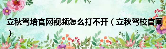 导读 大家好,今天小六子来为大家解答以下的问题,关于立秋驾培官网视频怎么打不开,立秋驾校官网这个很多人还不知道,现在让我们一起来看看吧!1