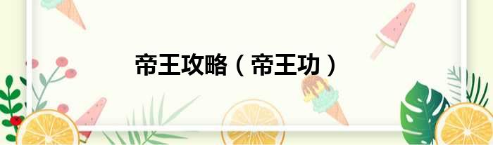大家好,今天小六子来为大家解答以下的问题,关于帝王攻略,帝王功这个很多人还不知道,现在让我们一起来看看吧!