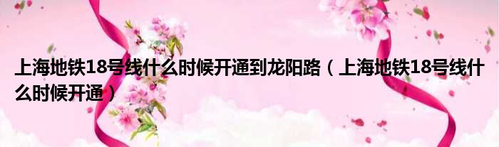 上海地铁18号线什么时候开通到龙阳路(上海地铁18号线什么时候开通)