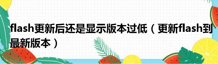 导读 大家好,今天小六子来为大家解答以下的问题,关于flash更新后还是显示版本过低,更新flash到最新版本这个很多人还不知道,现在让我们一起来