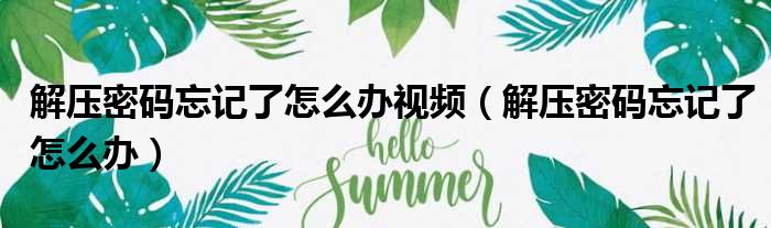 解压密码忘记了怎么办视频(解压密码忘记了怎么办)