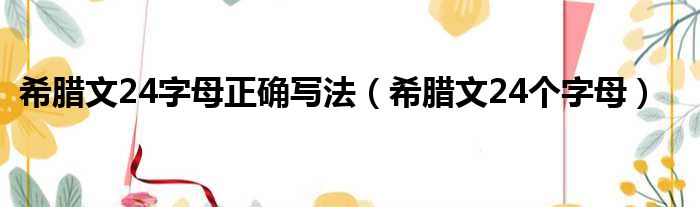 大家好,今天小六子来为大家解答以下的问题,关于希腊文24字母正确写法,希腊文24个字母这个很多人还不知道,现在让我们一起来看看吧!