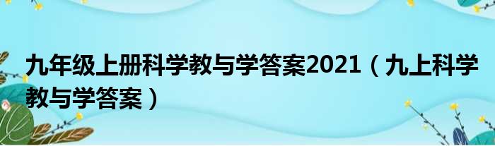 导读 大家好,今天小六子来为大家解答以下的问题,关于九年级上册科学教与学答案2021,九上科学教与学答案这个很多人还不知道,现在让我们一起来