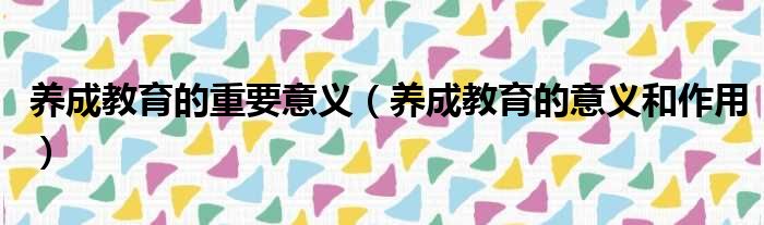 大家好,今天小六子来为大家解答以下的问题,关于养成教育的重要意义,养成教育的意义和作用这个很多人还不知道,现在让我们一起来看看吧!