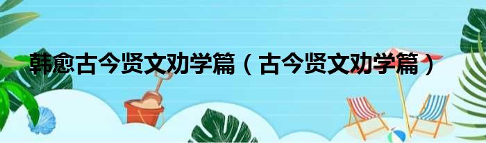 韩愈古今贤文劝学篇(古今贤文劝学篇)
