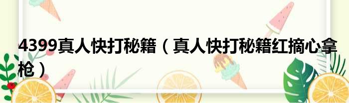 导读 大家好,今天小六子来为大家解答以下的问题,关于4399真人快打秘籍,真人快打秘籍红摘心拿枪这个很多人还不知道,现在让我们一起来看看吧!1