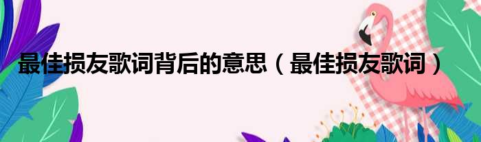 大家好,今天小六子来为大家解答以下的问题,关于最佳损友歌词背后的意思,最佳损友歌词这个很多人还不知道,现在让我们一起来看看吧!