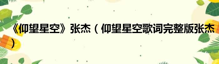 《仰望星空》张杰(仰望星空歌词完整版张杰)