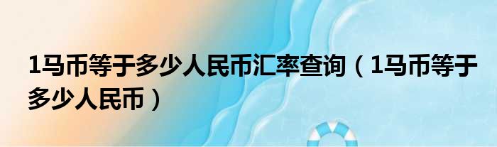 1马币等于多少人民币汇率查询(1马币等于多少人民币)