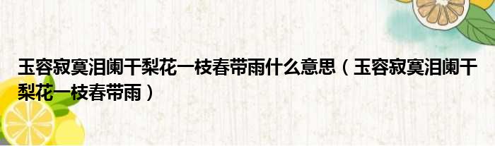 玉容寂寞泪阑干梨花一枝春带雨什么意思(玉容寂寞泪阑干梨花一枝春带雨)