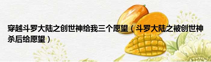 导读 大家好,今天小六子来为大家解答以下的问题,关于穿越斗罗大陆之创世神给我三个愿望,斗罗大陆之被创世神杀后给愿望这个很多人还不知道,现
