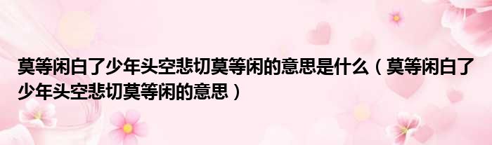 莫等闲白了少年头空悲切莫等闲的意思是什么(莫等闲白了少年头空悲切莫等闲的意思)