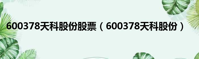 导读 大家好,今天小六子来为大家解答以下的问题,关于600378天科股份股票,600378天科股份这个很多人还不知道,现在让我们一起来看看吧!1、6003
