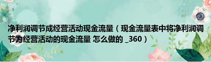 净利润调节成经营活动现金流量(现金流量表中将净利润调节为经营活动的现金流量 怎么做的 _360)