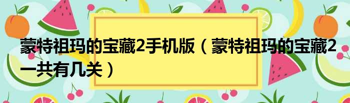 导读 大家好,今天小六子来为大家解答以下的问题,关于蒙特祖玛的宝藏2手机版,蒙特祖玛的宝藏2一共有几关这个很多人还不知道,现在让我们一起来