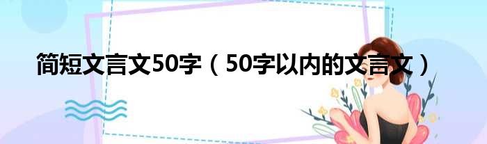 大家好,今天小六子来为大家解答以下的问题,关于简短文言文50字,50字以内的文言文这个很多人还不知道,现在让我们一起来看看吧!