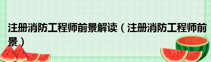 大家好,今天小六子来为大家解答以下的问题,关于注册消防工程师前景解读,注册消防工程师前景这个很多人还不知道,现在让我们一起来看看吧!