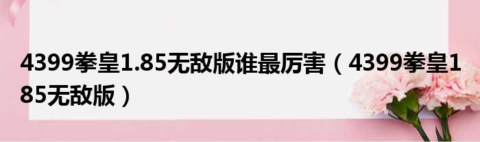 4399拳皇1.85无敌版谁最厉害(4399拳皇1 85无敌版)
