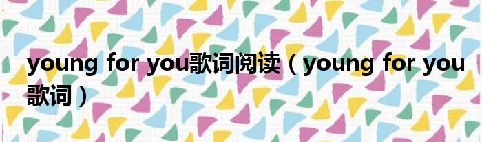 young for you歌词阅读(young for you歌词)