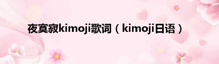 大家好,今天小六子来为大家解答以下的问题,关于夜寞寂kimoji歌词,kimoji日语这个很多人还不知道,现在让我们一起来看看吧!