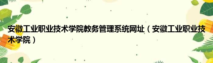 安徽工业职业技术学院教务管理系统网址(安徽工业职业技术学院)