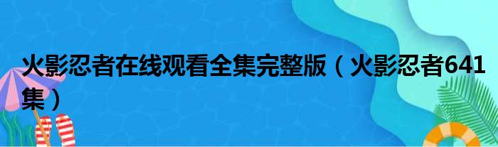 大家好,今天小六子来为大家解答以下的问题,关于火影忍者在线观看全集完整版,火影忍者641集这个很多人还不知道,现在让我们一起来看看吧!