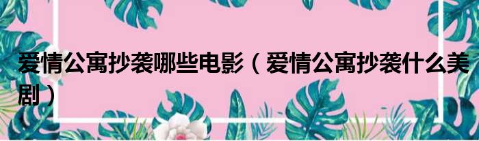 爱情公寓抄袭哪些电影(爱情公寓抄袭什么美剧)