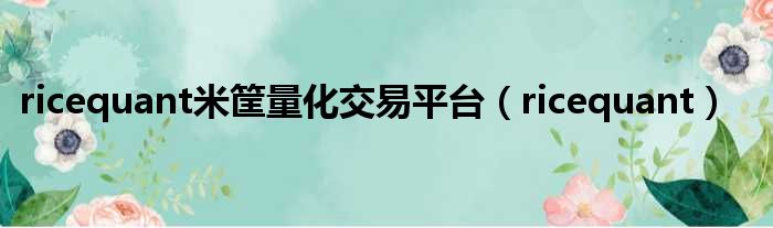 导读 大家好,今天小六子来为大家解答以下的问题,关于ricequant米筐量化交易平台,ricequant这个很多人还不知道,现在让我们一起来看看吧!1、去