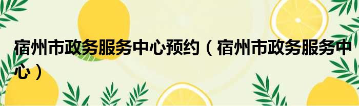 宿州市政务服务中心预约(宿州市政务服务中心)