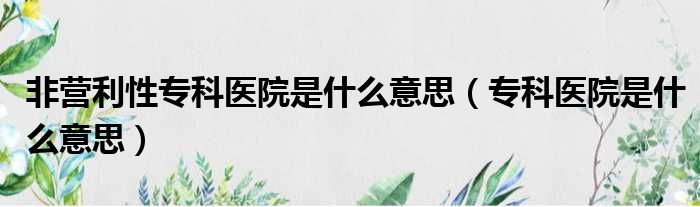 非营利性专科医院是什么意思(专科医院是什么意思)