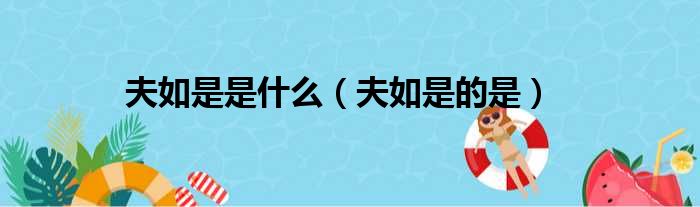 夫如是是什么(夫如是的是)