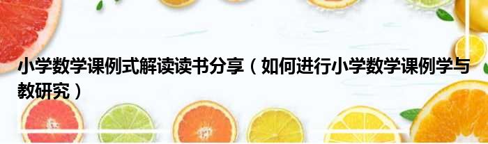 小学数学课例式解读读书分享(如何进行小学数学课例学与教研究)