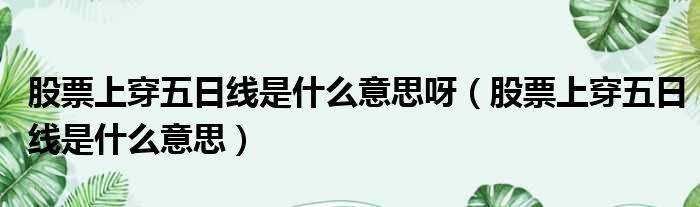 股票上穿五日线是什么意思呀(股票上穿五日线是什么意思)
