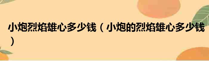 小炮烈焰雄心多少钱(小炮的烈焰雄心多少钱)