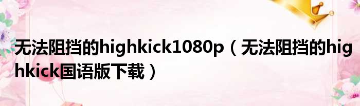 导读 大家好,今天小六子来为大家解答以下的问题,关于无法阻挡的highkick1080p,无法阻挡的highkick国语版下载这个很多人还不知道,现在让我们一