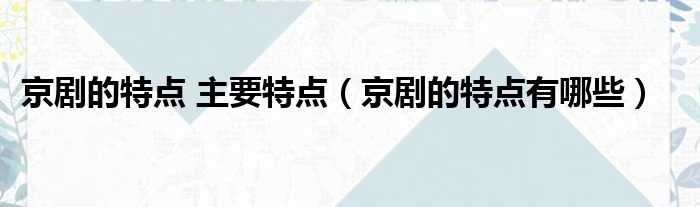 京剧的特点 主要特点(京剧的特点有哪些)