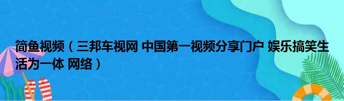 导读 大家好,今天小六子来为大家解答以下的问题,关于简鱼视频,三邦车视网 中国第一视频分享门户 娱乐搞笑生活为一体 网络这个很多人还不知