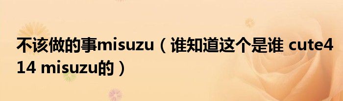 导读 大家好,今天小六子来为大家解答以下的问题,关于不该做的事misuzu,谁知道这个是谁 cute414 misuzu的这个很多人还不知道,现在让我们一起