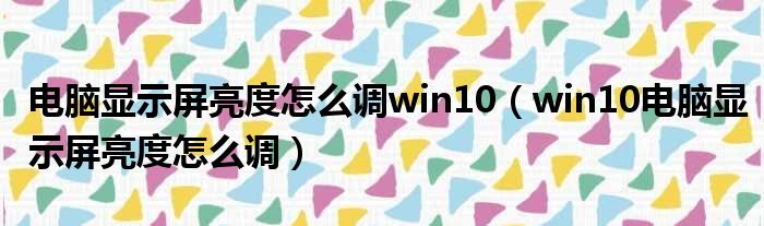 电脑显示屏亮度怎么调win10(win10电脑显示屏亮度怎么调)
