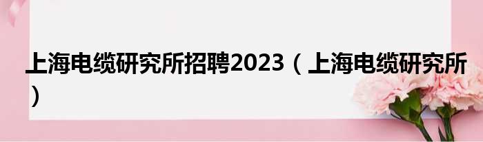 导读 大家好,今天小六子来为大家解答以下的问题,关于上海电缆研究所招聘2023,上海电缆研究所这个很多人还不知道,现在让我们一起来看看吧!1、