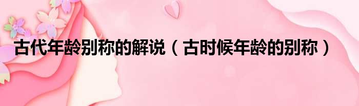 导读 大家好,今天小六子来为大家解答以下的问题,关于古代年龄别称的解说,古时候年龄的别称这个很多人还不知道,现在让我们一起来看看吧!1、古
