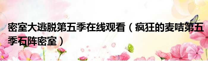 密室大逃脱第五季在线观看(疯狂的麦咭第五季石阵密室)
