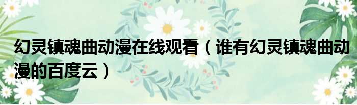 导读 大家好,今天小六子来为大家解答以下的问题,关于幻灵镇魂曲动漫在线观看,谁有幻灵镇魂曲动漫的百度云这个很多人还不知道,现在让我们一起