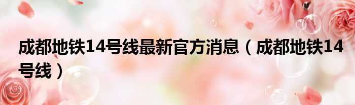 成都地铁14号线最新官方消息(成都地铁14号线)