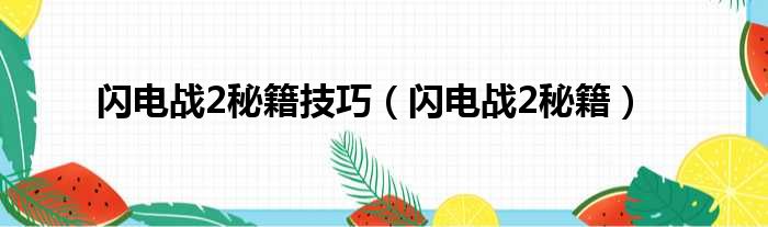 大家好,今天小六子来为大家解答以下的问题,关于闪电战2秘籍技巧,闪电战2秘籍这个很多人还不知道,现在让我们一起来看看吧!