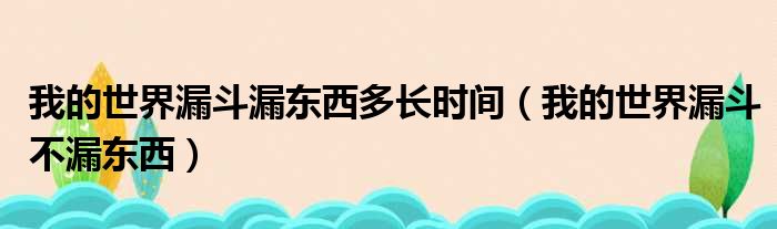 我的世界漏斗漏东西多长时间(我的世界漏斗不漏东西)