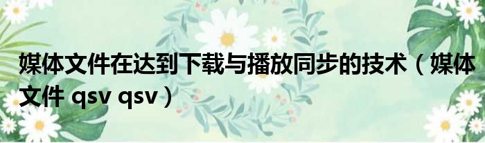 媒体文件在达到下载与播放同步的技术(媒体文件 qsv qsv)