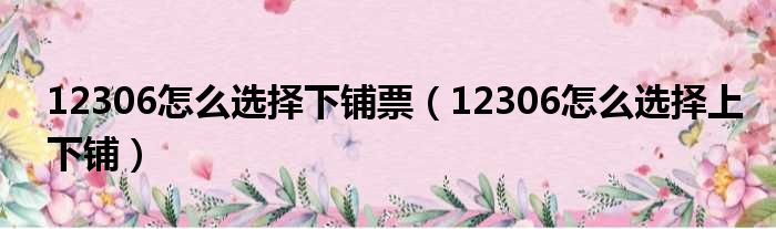 12306怎么选择下铺票(12306怎么选择上下铺)